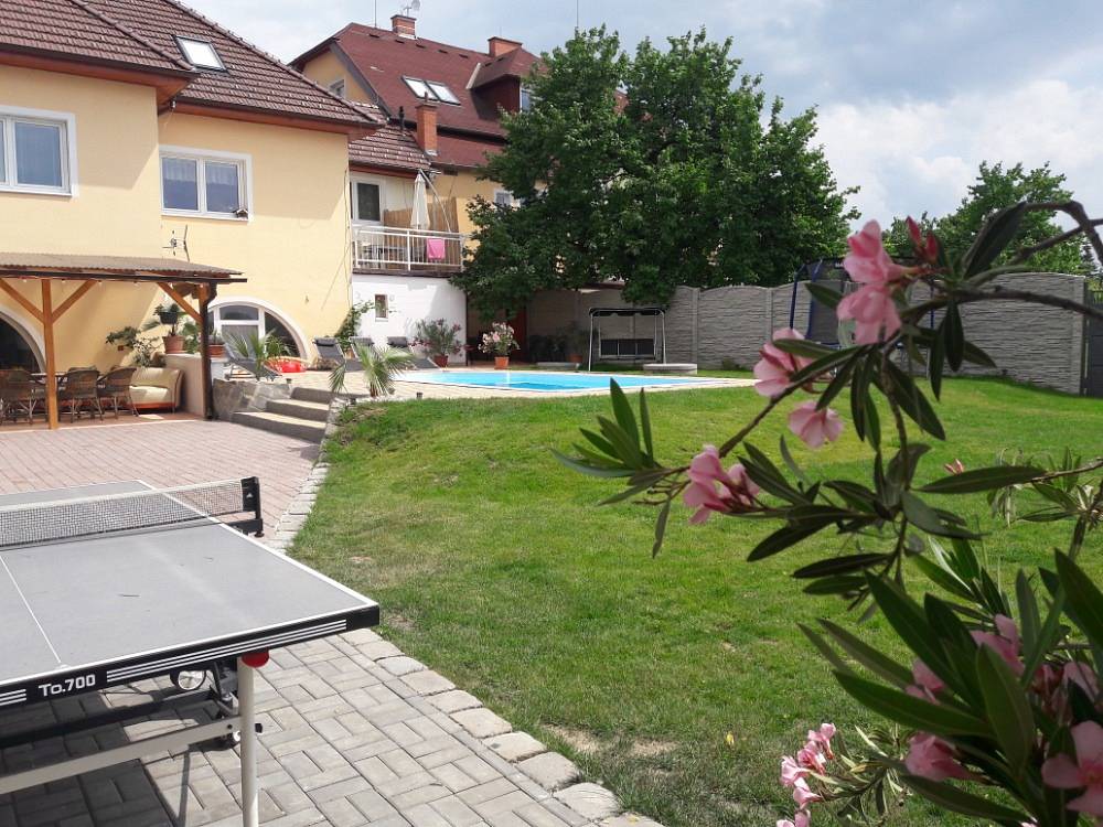 Apartmán má svůj vlastní vchod a parkování před domem. Ze vstupní haly v přízemí se vchází do obývacího pokoje, ve kterém jsou k dispozici dvě sedací soupravy s konferenčním stolkem, jídelní stůl se šesti židlemi, TV - plazma s úhlopříčkou 105 cm, s příjmem satelitu TELLY, Hi - Fi věž, DVD/VHS přehrávač, vinotéka pro uskladnění vína. Pokoj je propojen s kuchyní a jídelnou – plně vybavená kuchyňská linka s nádobím, lednice s mrazicím boxem, myčka, plynový sporák s elektrickou troubou, odsavač, mikrovlnná trouba, varná konvice, domácí pekárna, domácí výčepní zařízení na 5l soudky, velký kuchyňský stůl a šest barových židlí. Z kuchyně je přístup na venkovní terasu se zahradním nábytkem. Z haly se vstupuje též do podkroví a do suterénu. V podkroví se nachází tři ložnice, které jsou neprůchozí. Každá ze dvou menších ložnic obsahuje dvě manželské postele, skříně a TV, třetí ložnice má tři manželské postele, skříně a TV. V suterénu se nachází čtvrtá ložnice s manželskou postelí, druhý obývací pokoj s TV, kuchyňským koutem a krbem, kde jsou k dispozici další čtyři lůžka. Odtud se pak prochází na zahradu s venkovním bazénem o velikosti 3,5 x 7,5 m, kde je možné využívat ohniště, gril, posezení, pískoviště, domeček pro děti, hračky na písek, kočárek s panenkou, stolní tenis, stolní fotbal, trampolínu a skluzavku. Zahrada sousedí s výběhem pro naše hodné ovečky. V přízemí se nachází koupelna s rohovou vanou, umyvadlem a pračkou a samostatné WC, v podkroví sprchový kout, umyvadlo a WC a v suterénu dvě WC a koupelna se sprchovým koutem. Pro děti jsou v apartmánu k dispozici knížky, hračky, společenské hry a počítač.